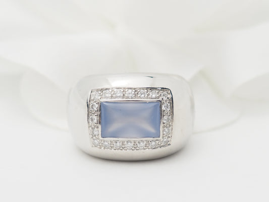 Bague Poiray en or blanc, calcédoine bleue et diamants