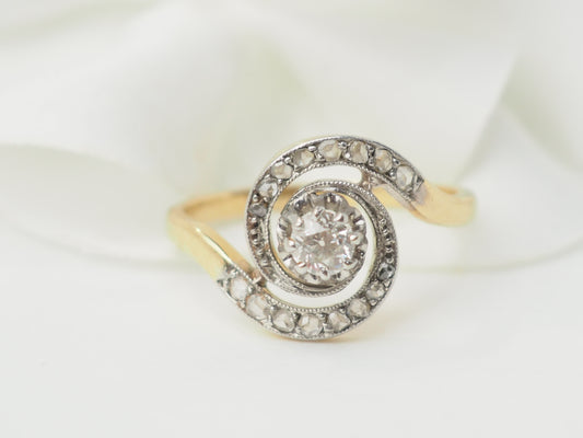 Bague jarretière en or jaune, saphirs et pierres de lune