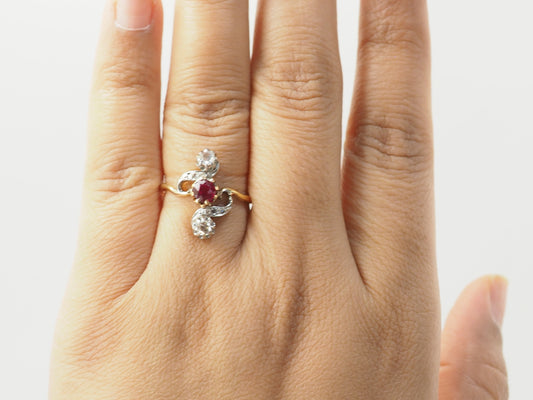 Bague marguerite en or blanc, rubis 0.45ct et diamants