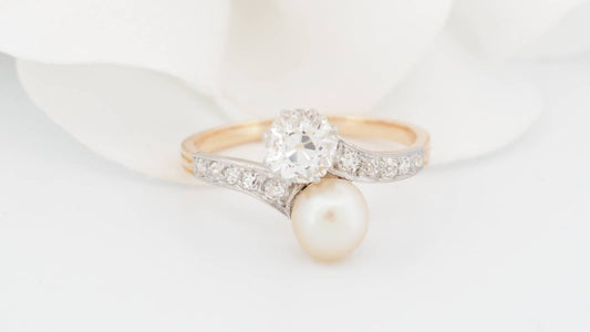 Bague Toi et Moi en or jaune, diamants et perle de culture