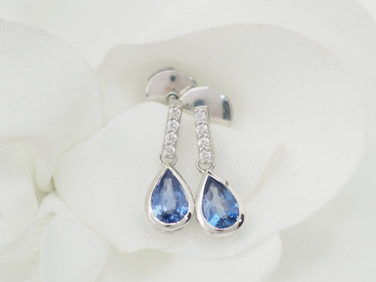 Boucles d'oreilles dormeuses en or blanc, saphir et diamants