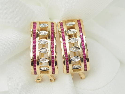 Boucles d'oreilles vintage en or jaune, rubis et diamants