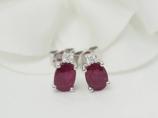Puces d'oreilles en or blanc, rubis 2.20cts et diamants