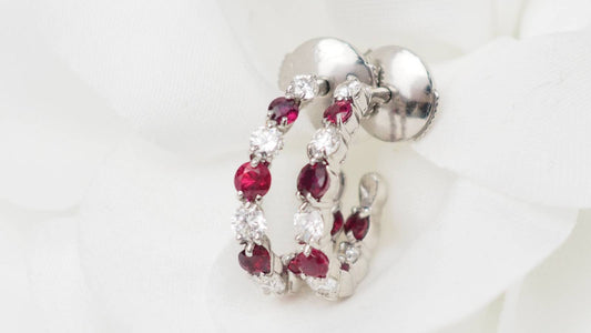 Boucles d'oreilles créoles en or blanc, rubis et diamants