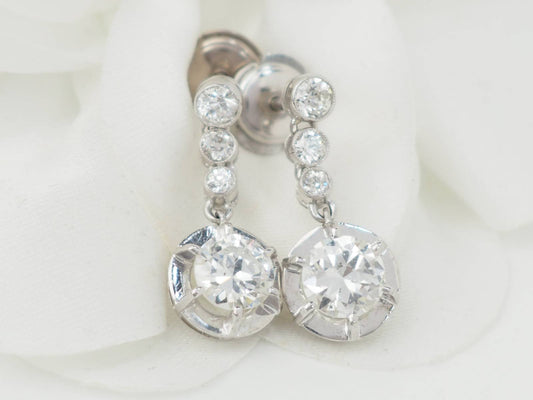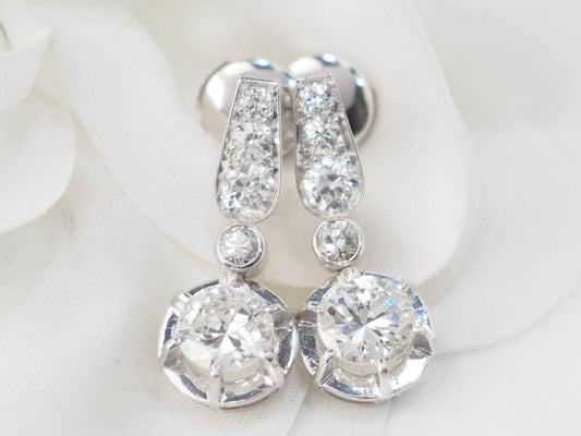 Boucles d'oreilles importantes en or blanc et pavage de diamants