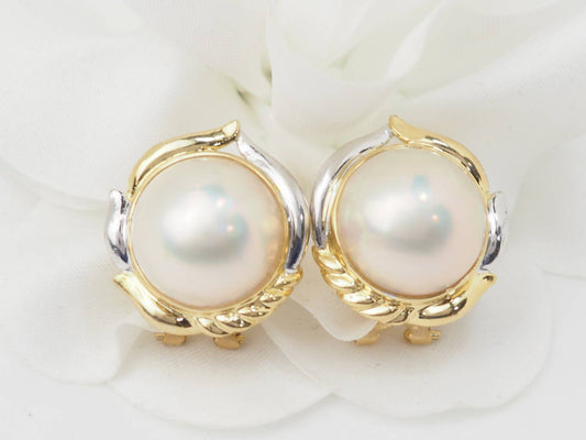 Boucles d'oreilles importantes en or bicolore et demis perles