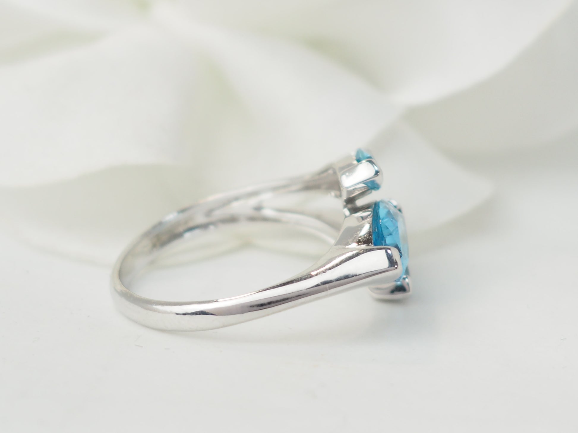 Bague en or blanc et topazes bleues