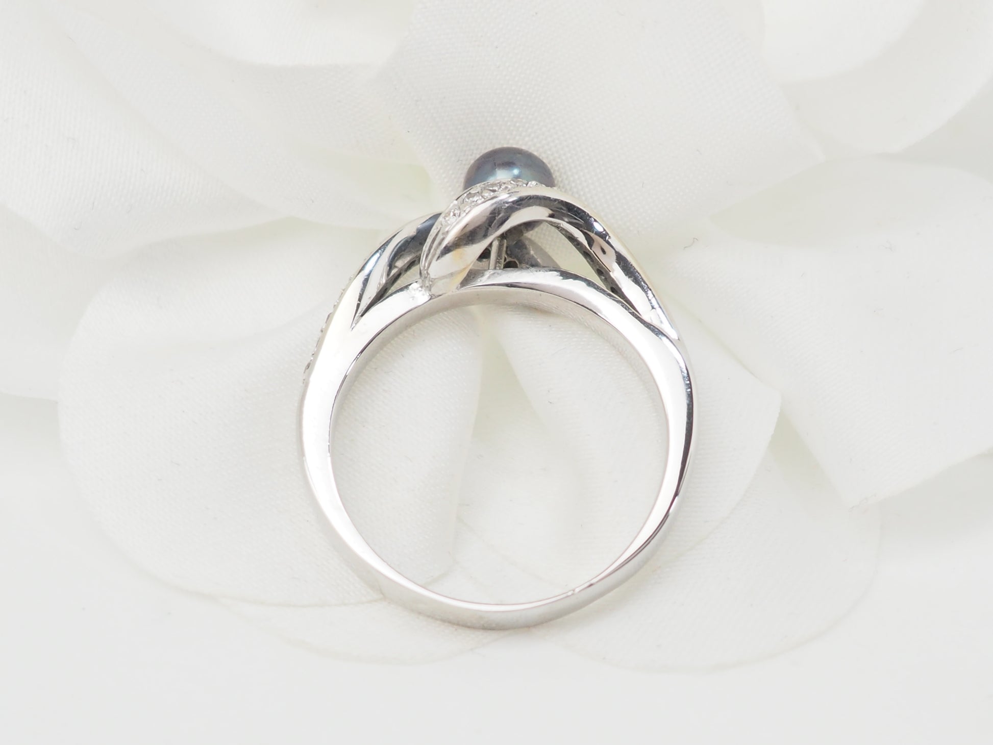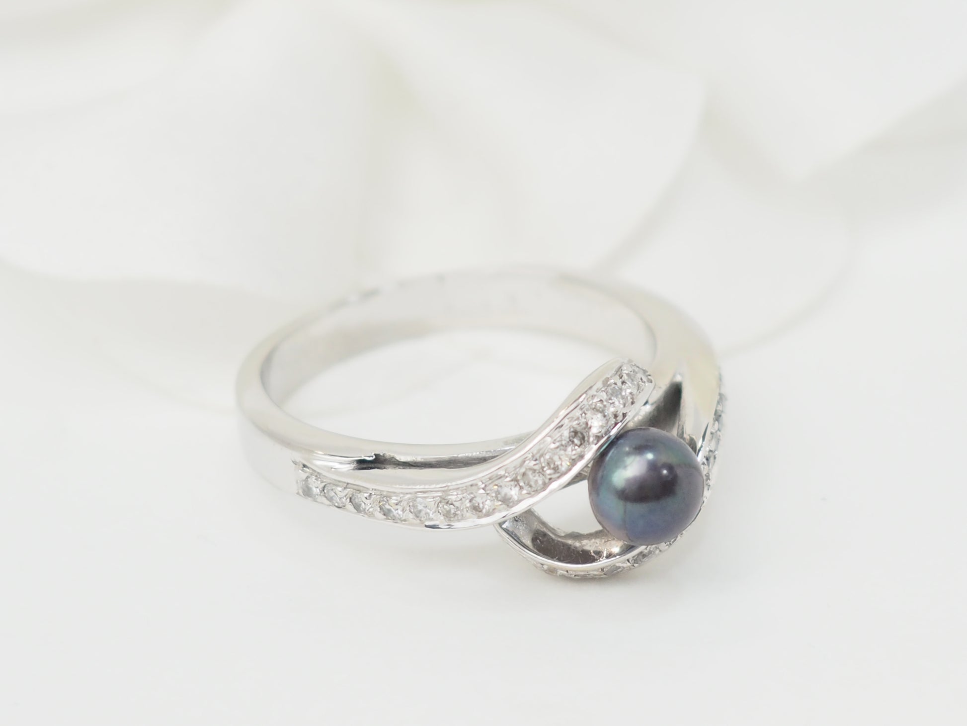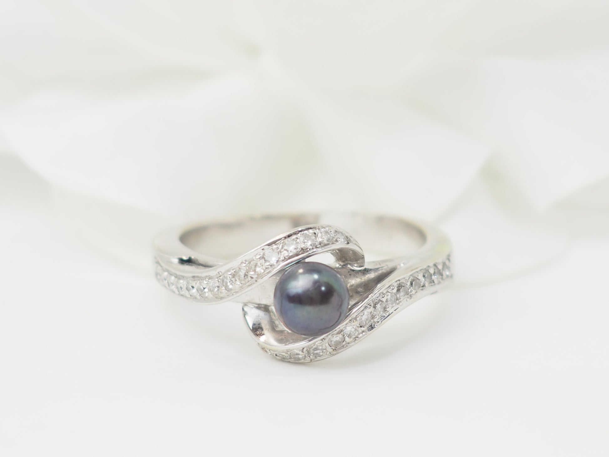 Bague en or blanc, perle de Tahiti et diamants