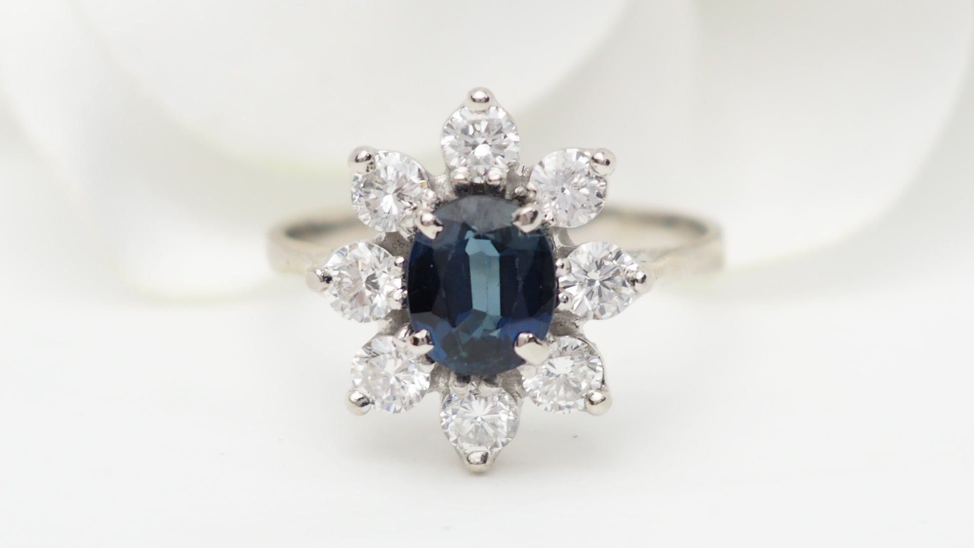 - Ornée d'un saphir ovale d'environ 1,20ct ;