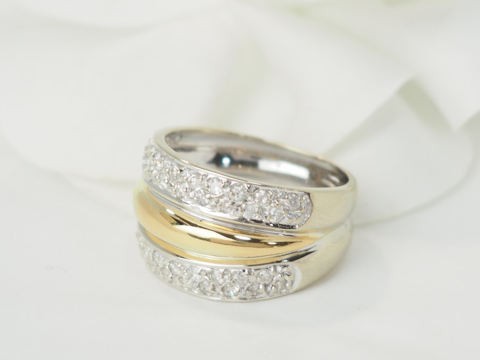 Bague jonc en or bicolore et diamants