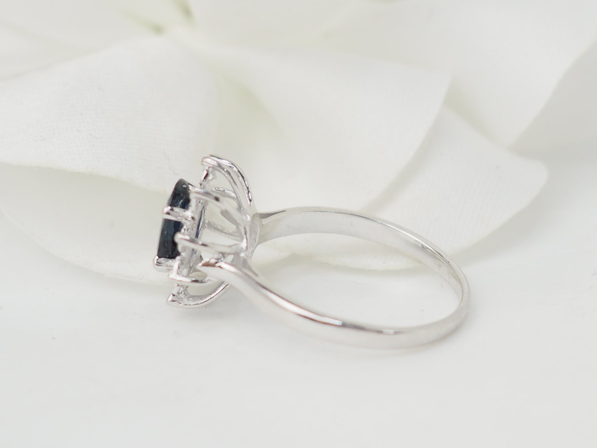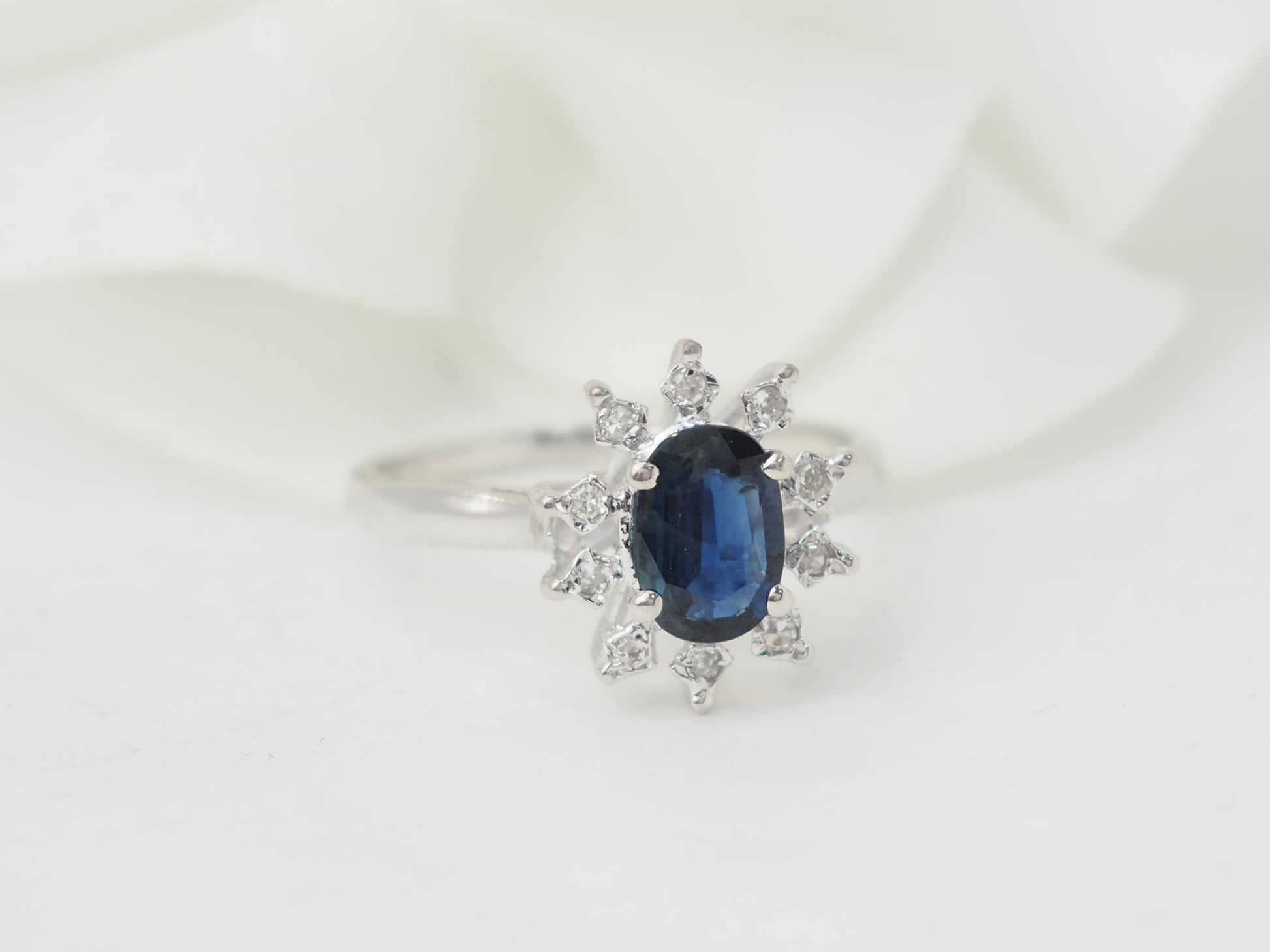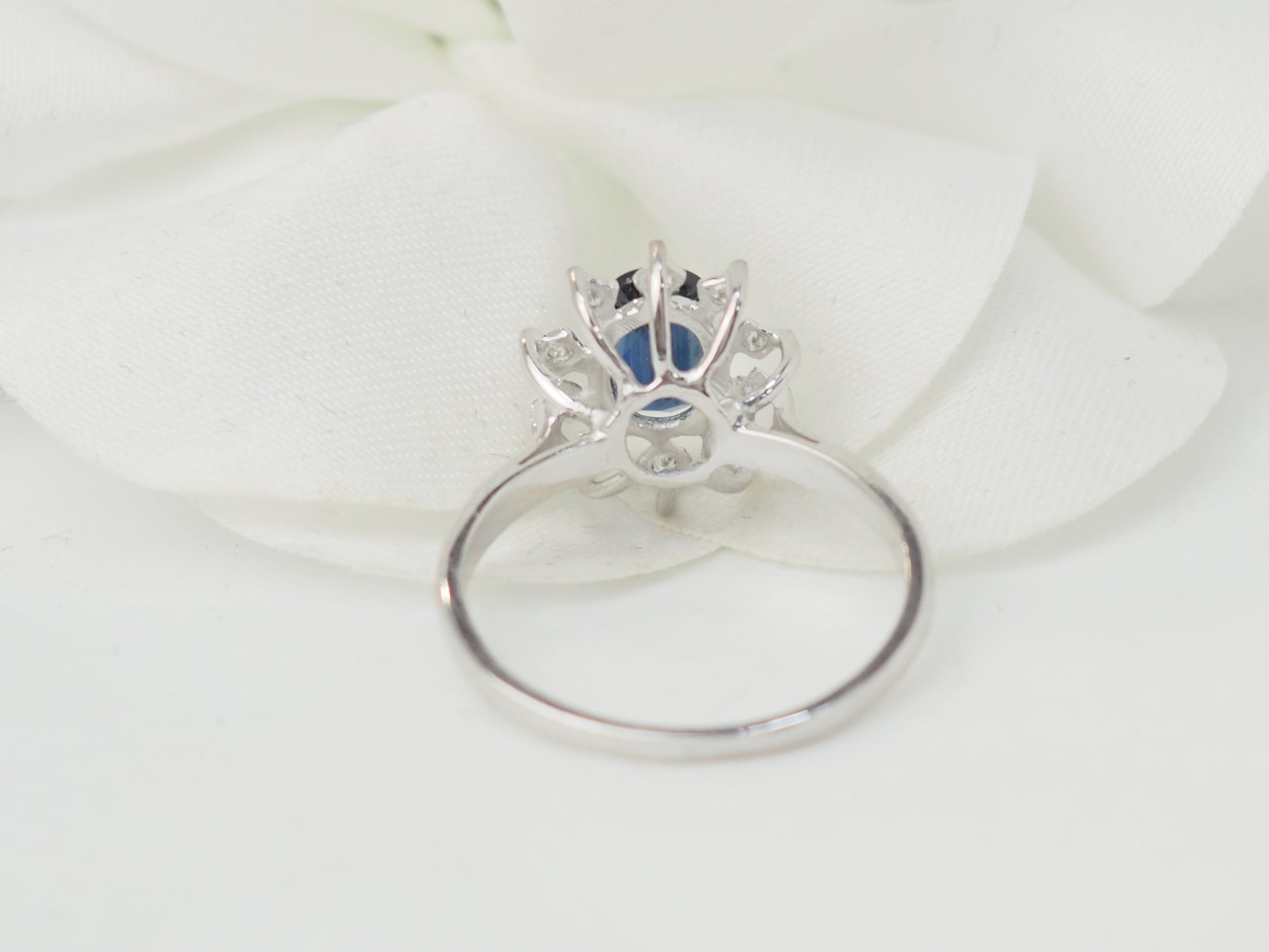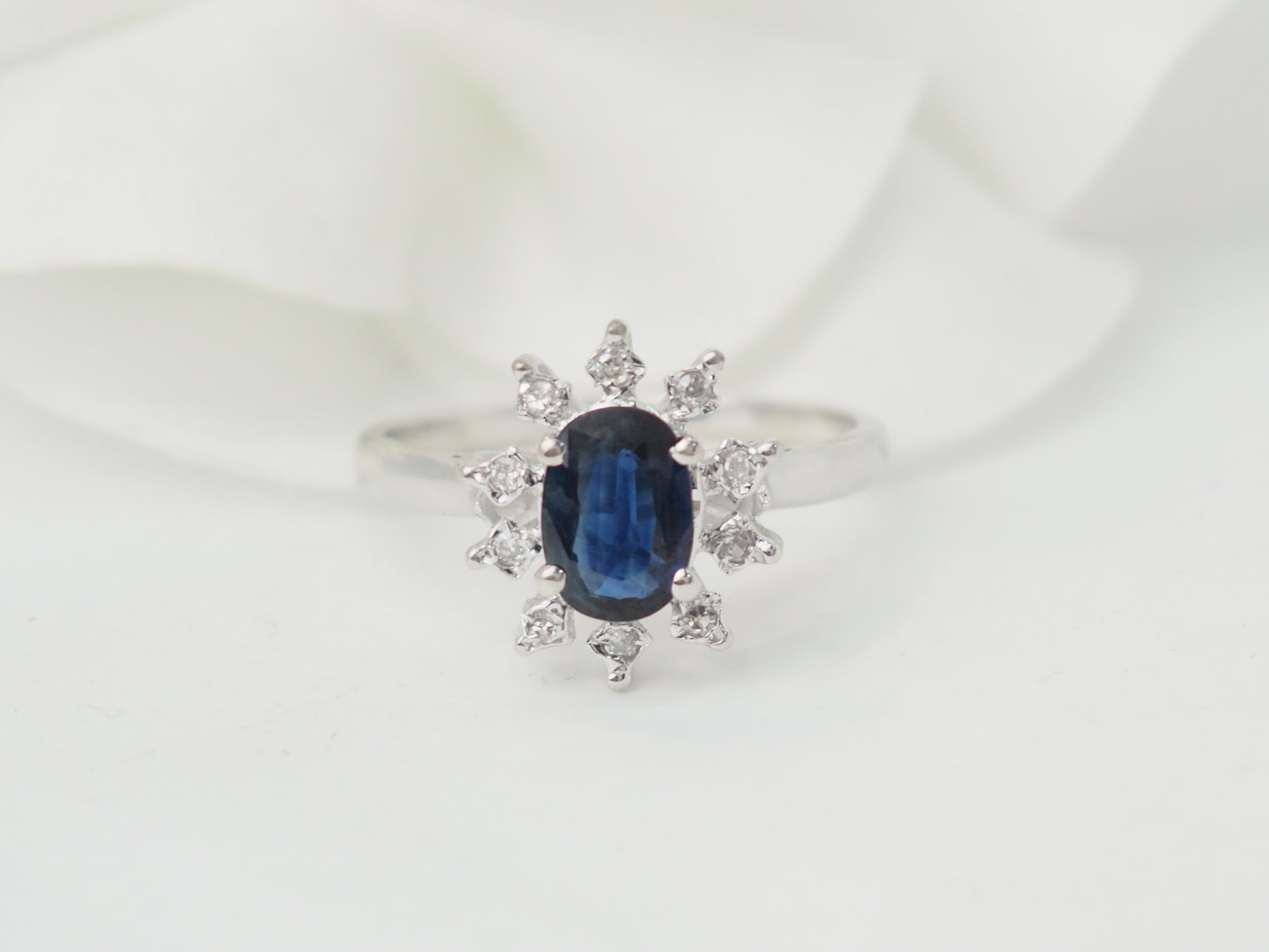 Bague marguerite en or blanc et saphir