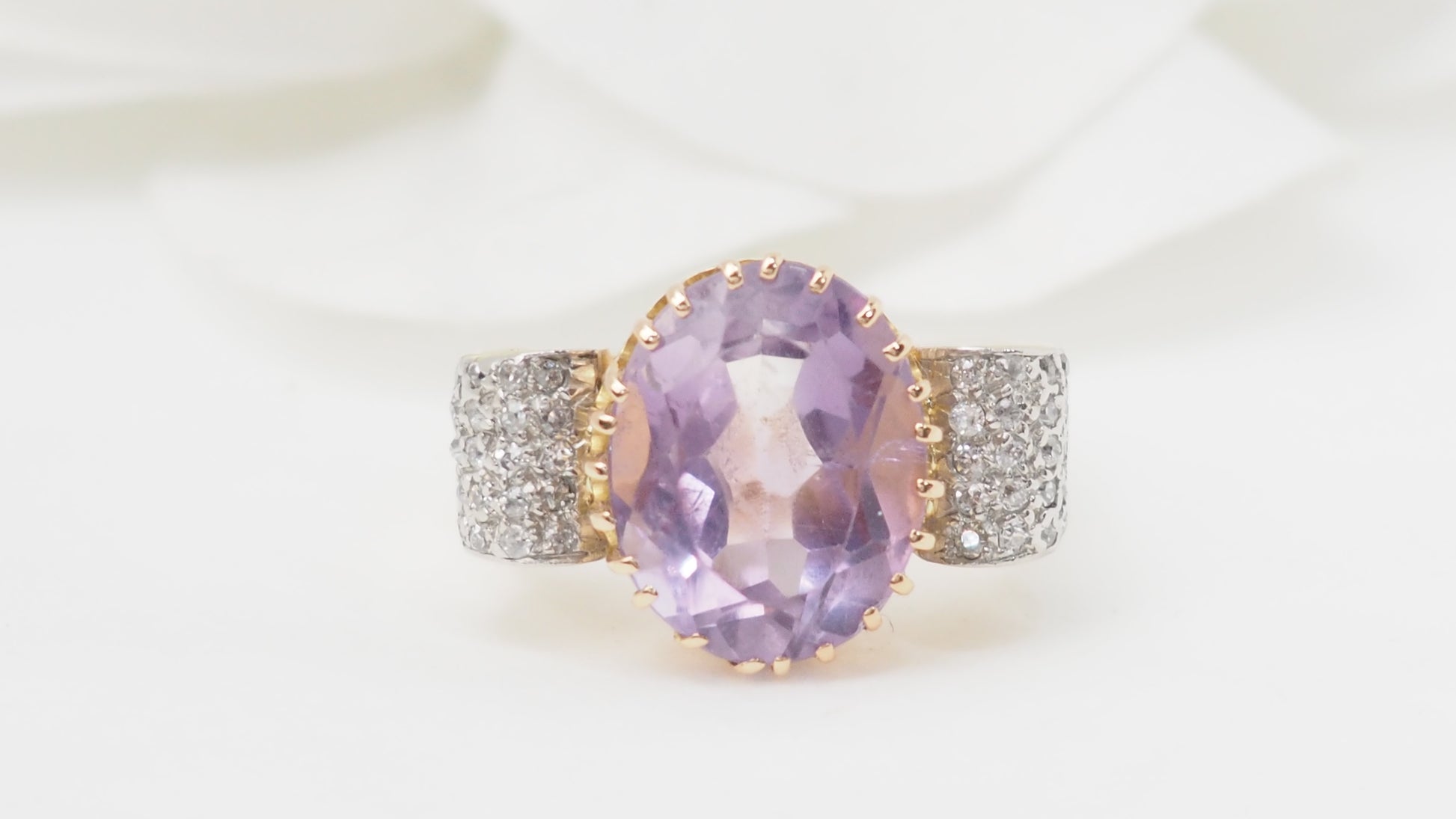 Bague noeud en or jaune, améthyste et diamants