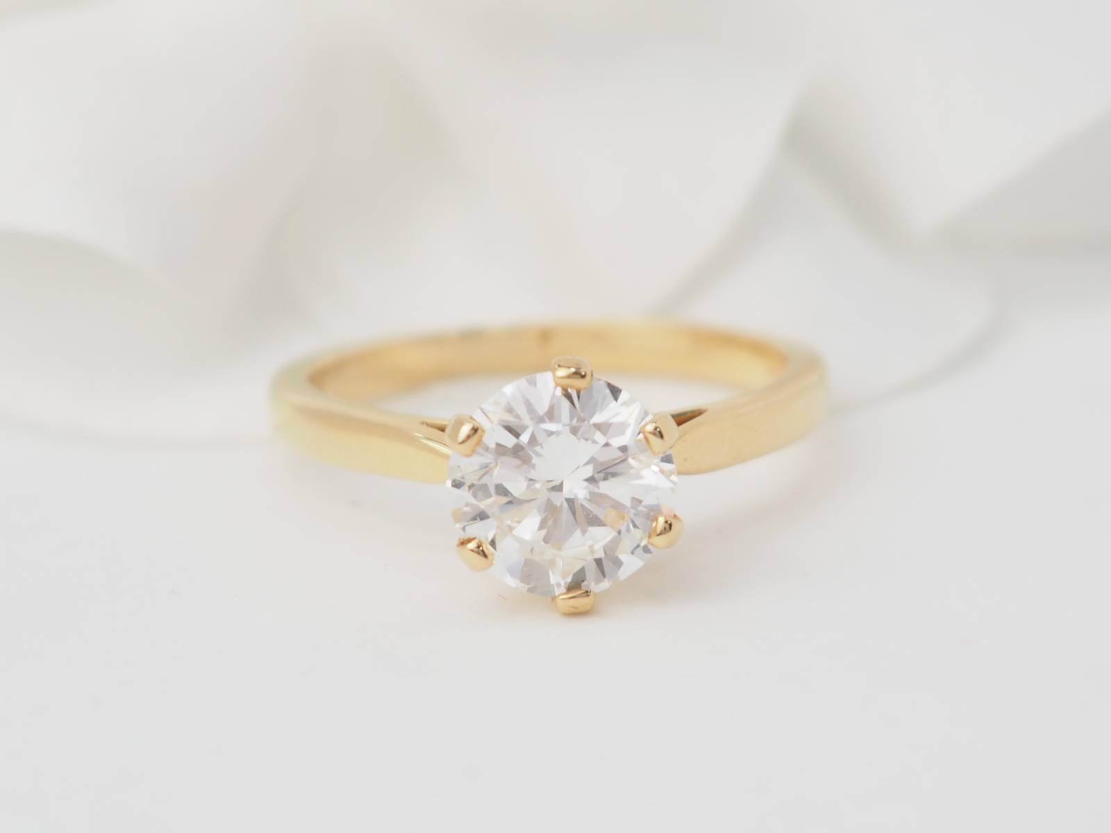 - Sertie d'un diamant naturel taille brillant de 1.59ct, qualité H, en sertis 6 griffes ;