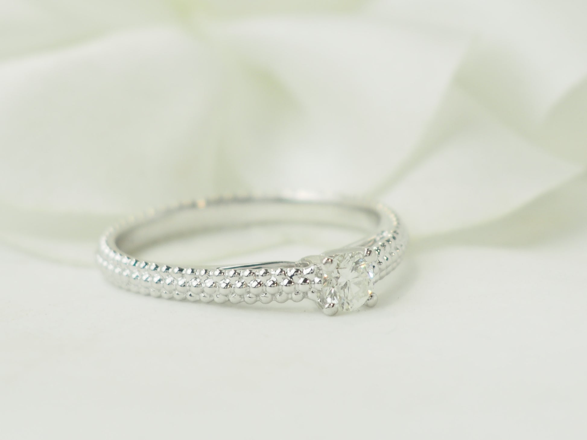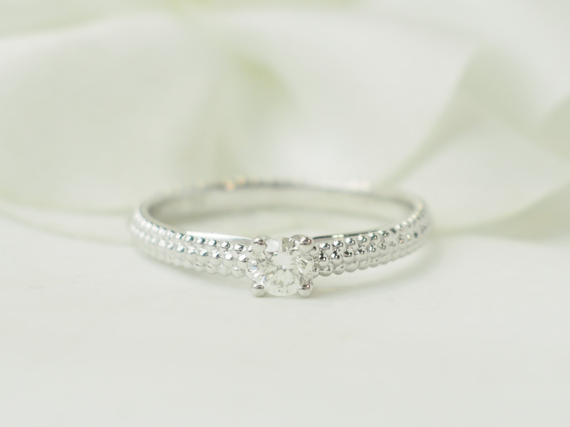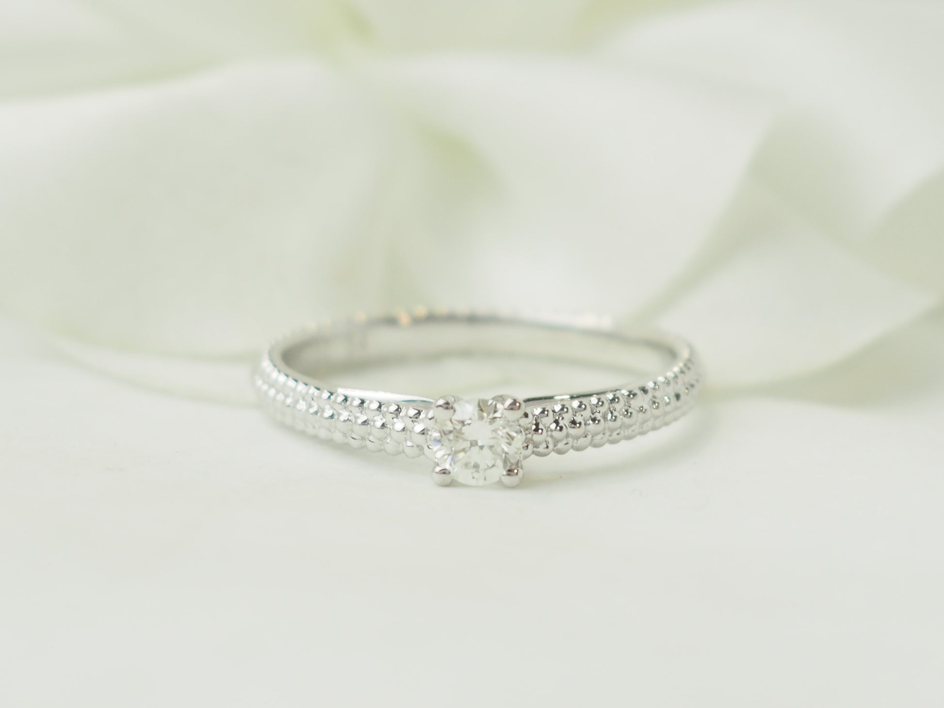 - Centrée d'un diamant taille brillant de 0,18ct, qualité H SI ;