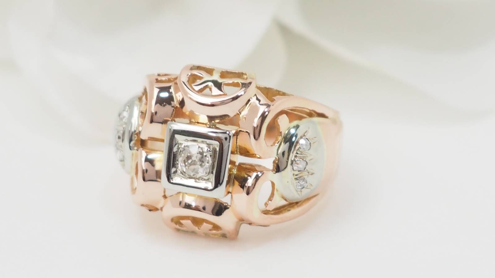 - Sertie au centre d'un diamant taille ancienne d'environ 0,12ct ;
