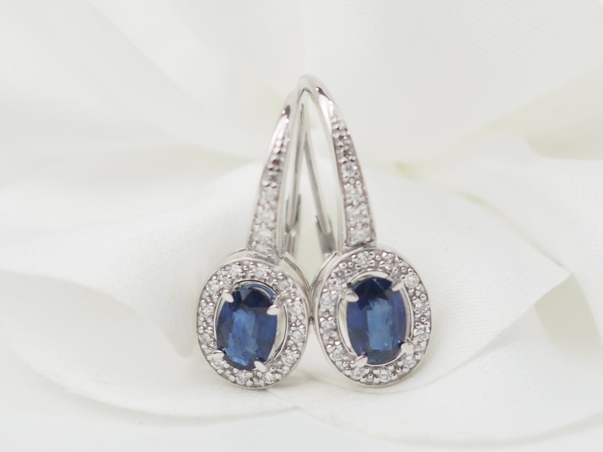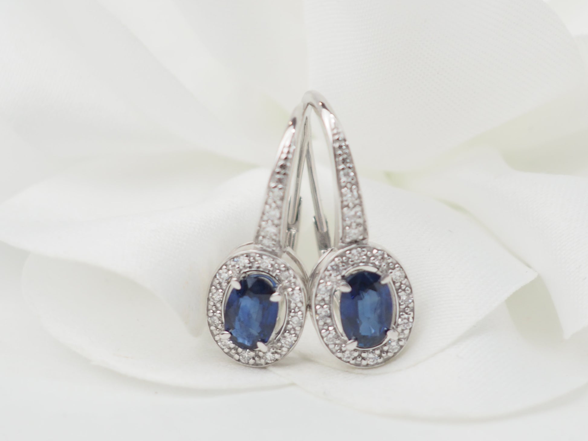 Boucles d'oreilles dormeuses en or blanc, saphir et diamants