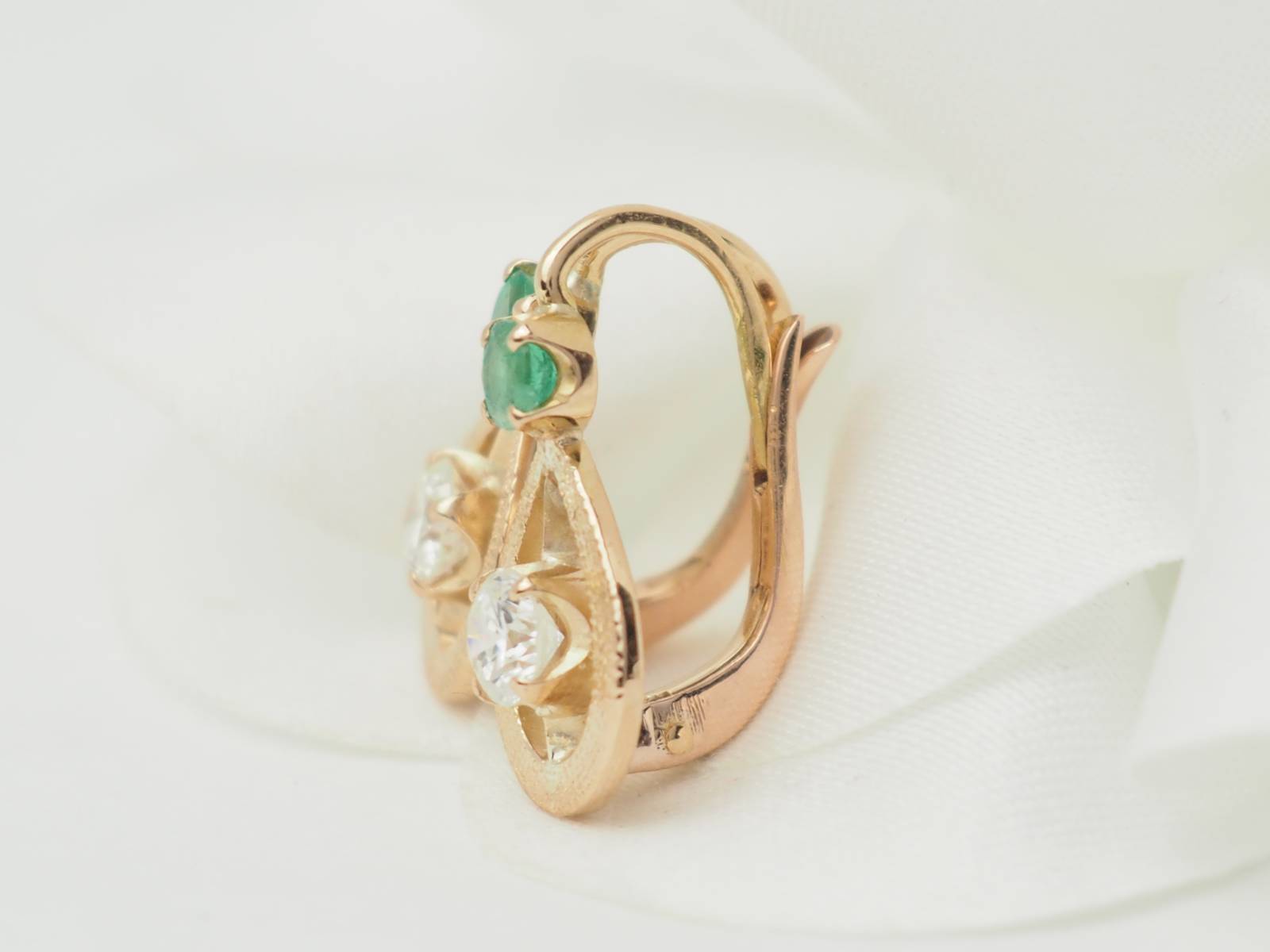 Boucles d'oreilles en or jaune, émeraudes et diamants