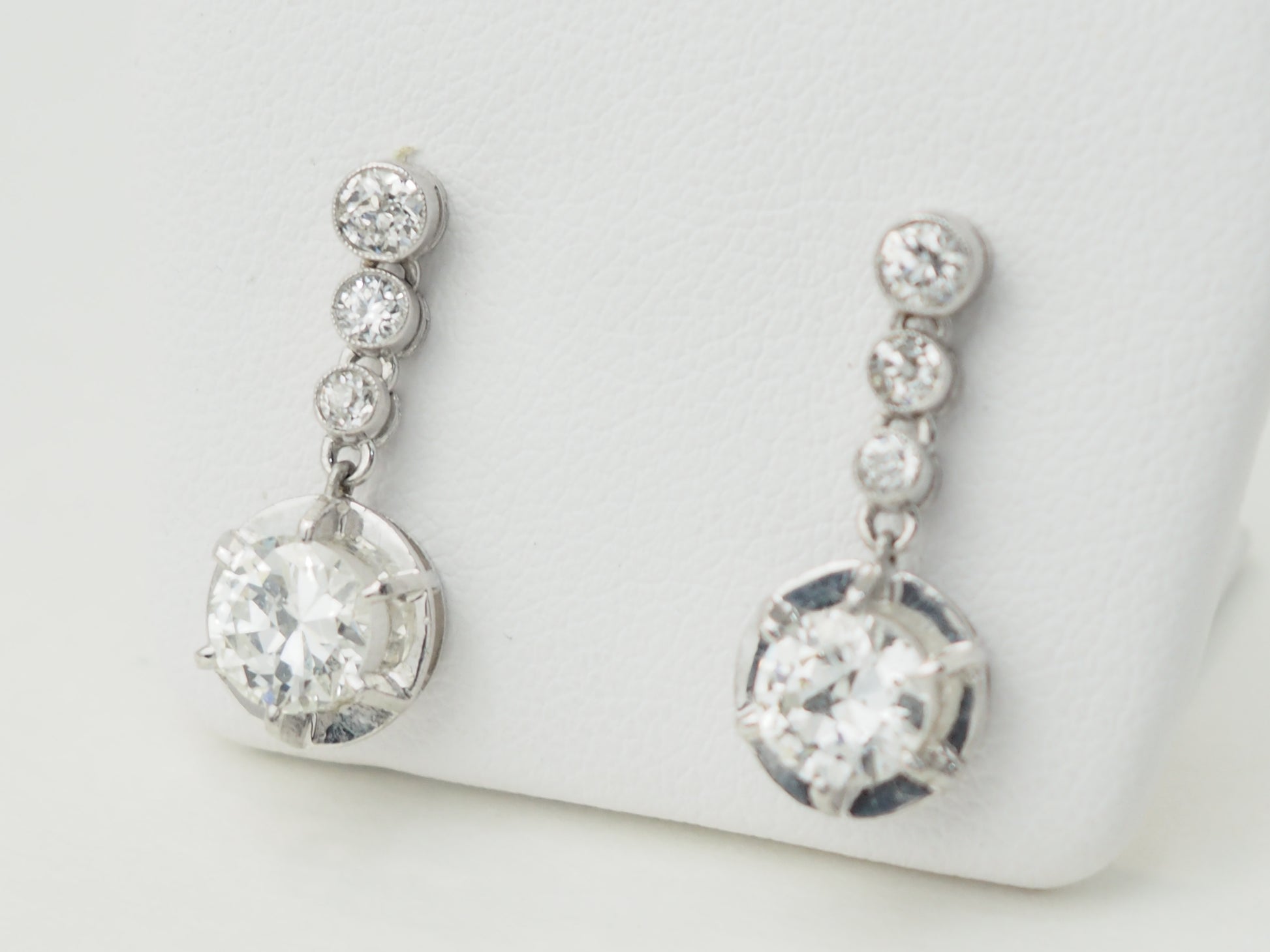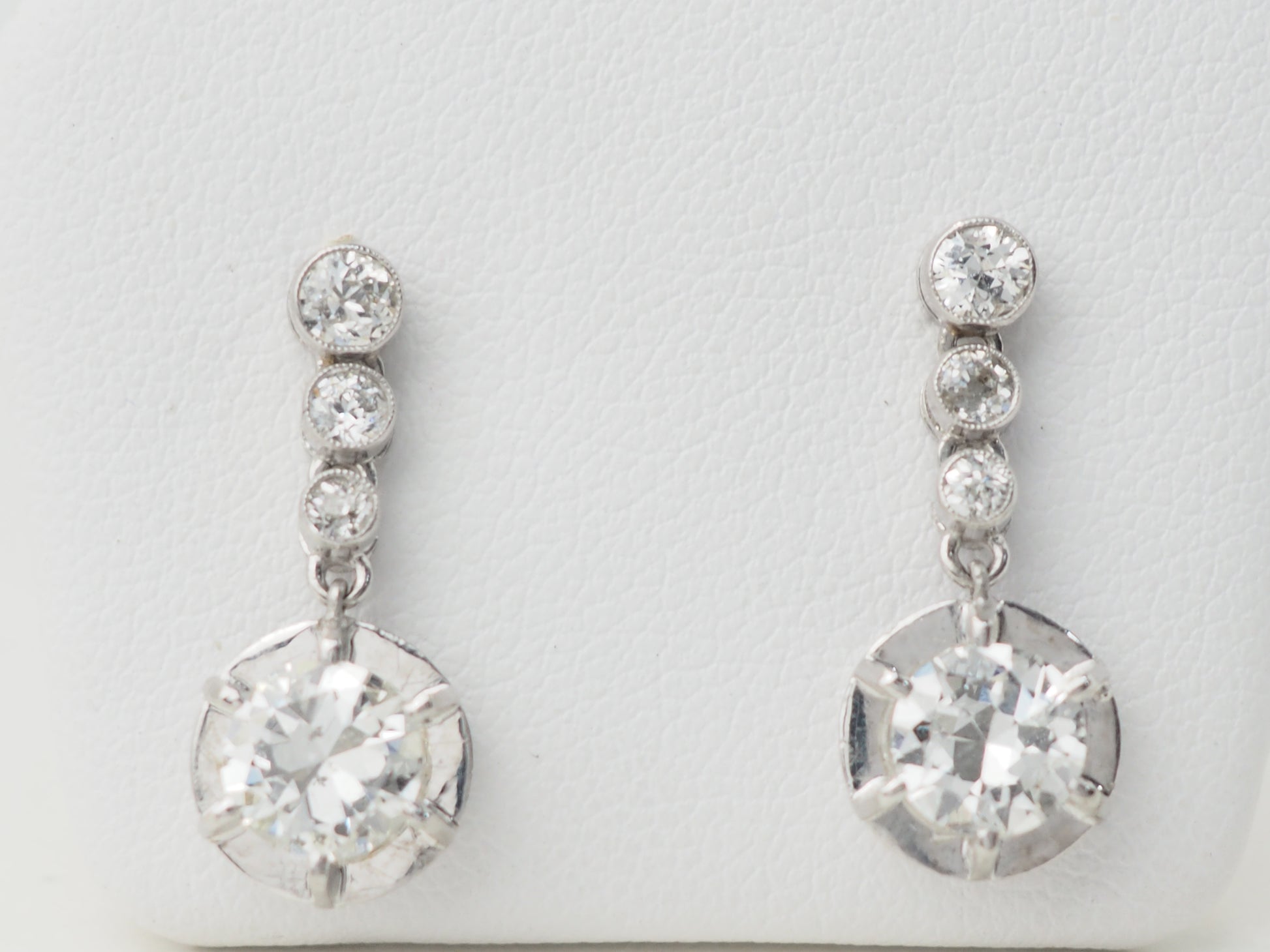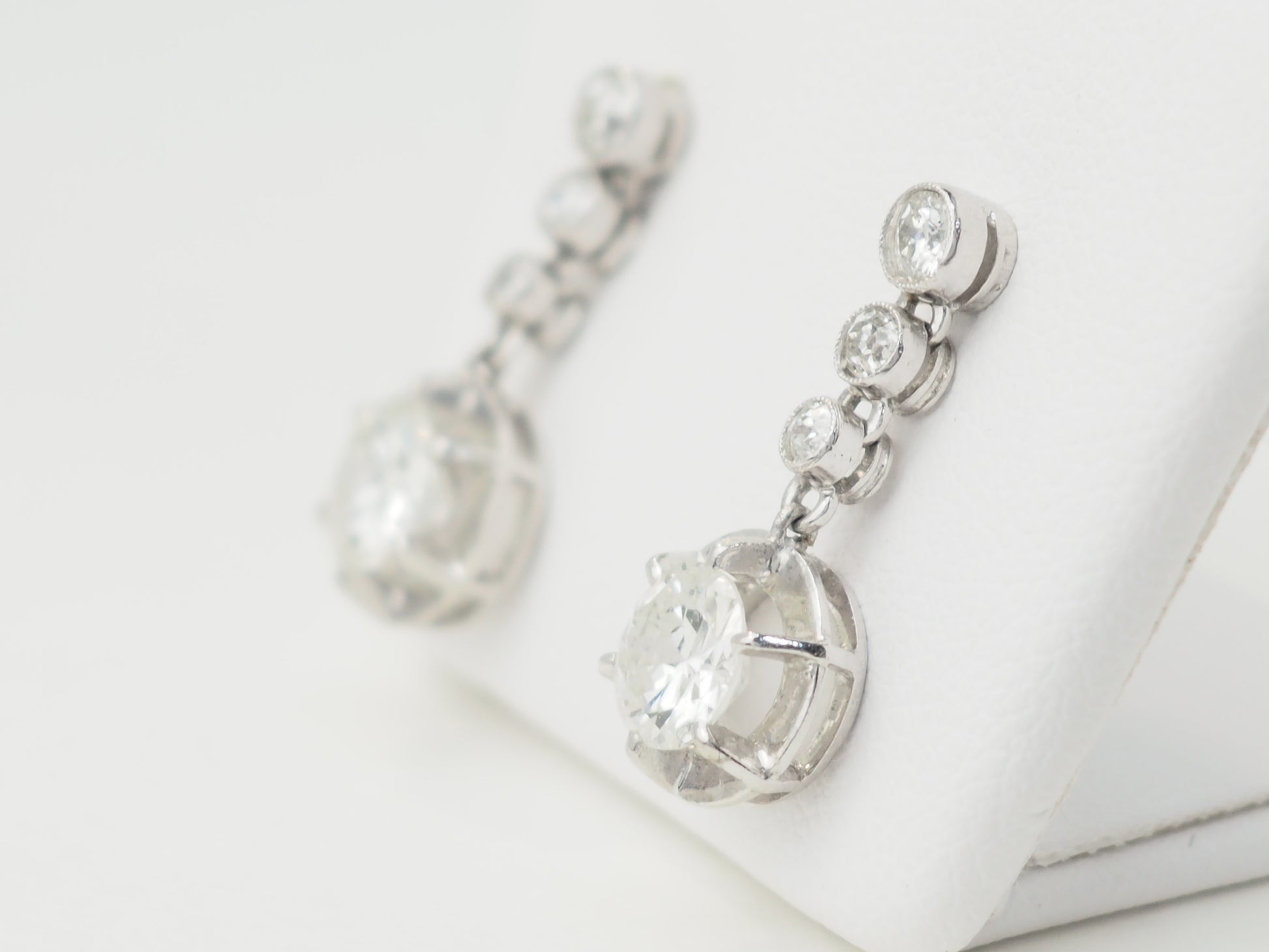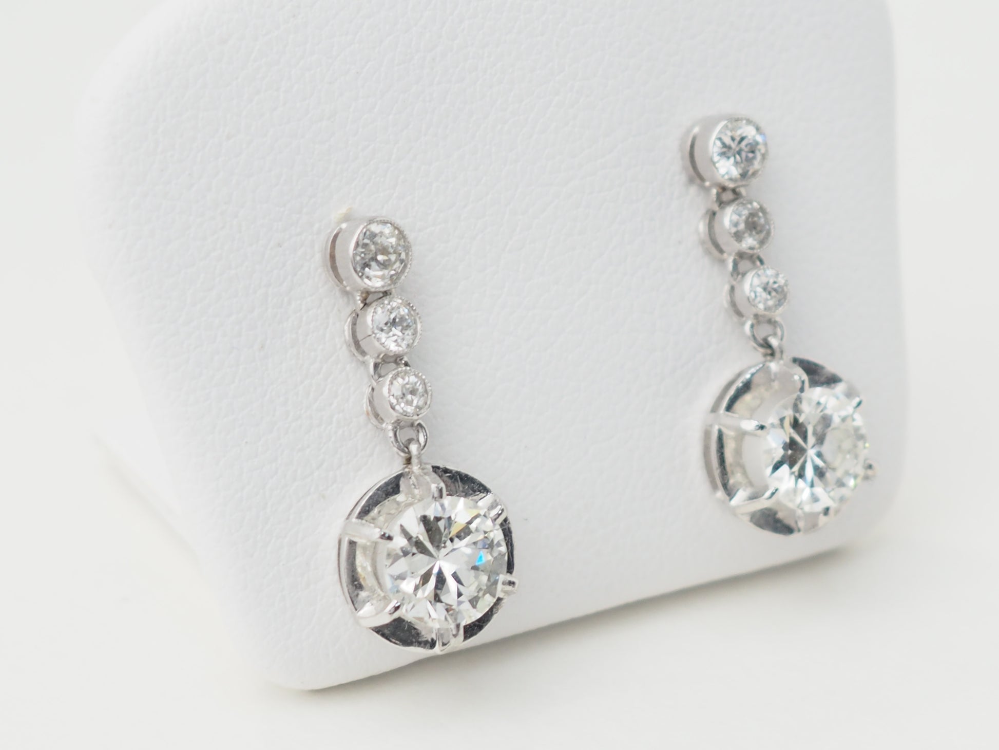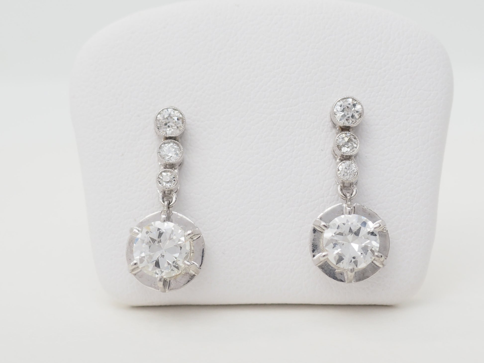 - Ornées de 2 diamants taille brillant de 0,75ct, 2 lignes de diamants en chute pour un poids total d'environ 0,30ct ;